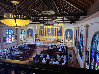 We would like to thank Fr. Joe Tabigue for being hebdomadary for First Vespers of St. Michael the Archangel at Our Lady of the Rosary, as well as for once again inviting us to assist with the Eucharistic Procession at this year's Our Lady of the Rosary Festa. It was our first time celebrating a liturgy at Our Lady of the Rosary since All Hallows 2019, and since that time, many of the church's Vatican II wreckovations such as art whitewashing and sanctuary carpeting have been undone.